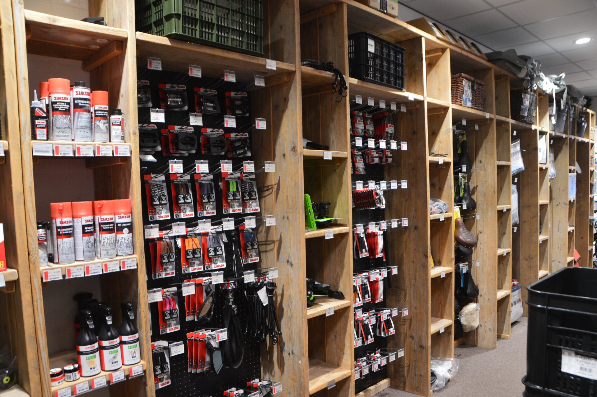 Denk aan sterke fietssloten, stijlvolle fietsmanden, handige kratten, degelijke verlichting voor alle weersomstandigheden, comfortabele zadels, bellen in alle soorten en maten en nog veel meer. Ook voor onderhoud en praktische onderdelen zit je goed: binnenbanden, buitenbanden, gereedschap, pompjes, kettingspray, reflectoren en nog talloze andere must-haves.